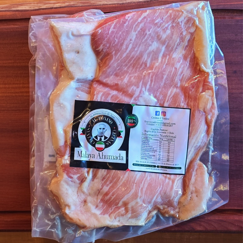 Corte artesanal de cerdo curado y ahumado lentamente, lo que le otorga un sabor profundo y una textura jugosa. Elaborada con las mejores carnes de la Región de La Araucanía, esta malaya es perfecta para acompañar tus parrilladas, asados o disfrutarla como un delicioso aperitivo.