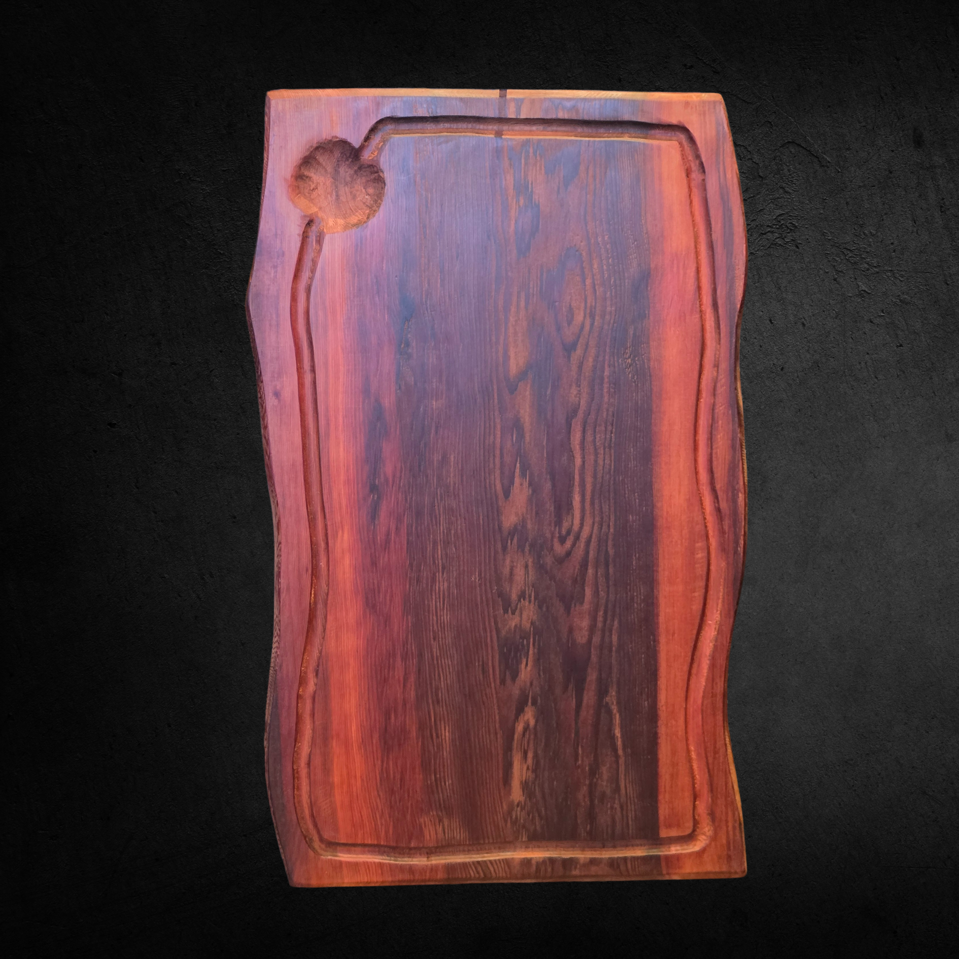 Directamente desde el corazón de la Patagonia chilena, esta tabla ha sido elaborada a mano con madera de alerce nativo reciclado, una especie noble y de gran valor histórico. Su diseño rústico y elegante la convierte en pieza única, ideal tanto para cortar carne como para presentar quesos, embutidos o picoteos con estilo.