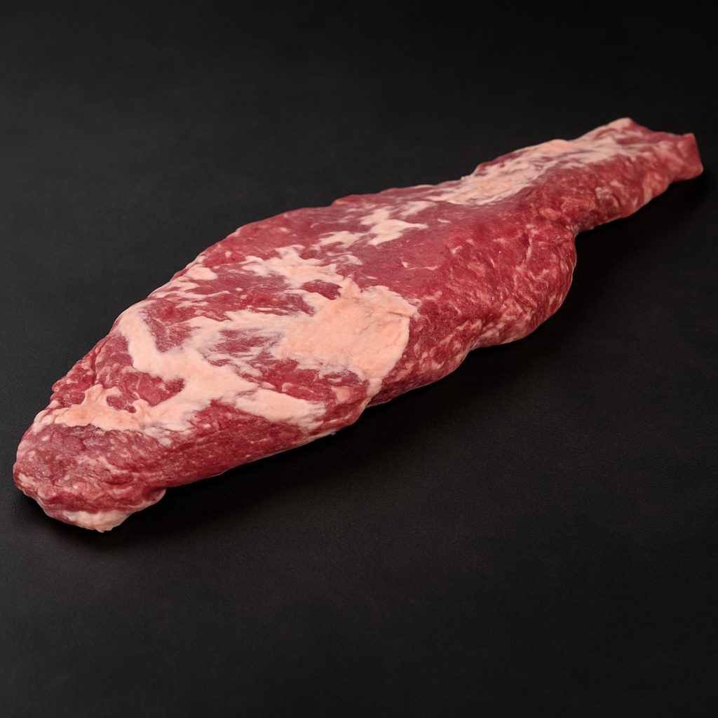 Este corte, extraído desde la parte baja del vacuno, presenta un equilibrio perfecto entre carne y grasa, ideal para una cocción lenta y fuego fuerte, donde desarrolla una costra crujiente por fuera y un interior sabroso y tierno.