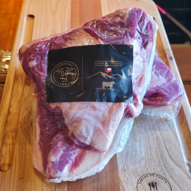 Corte de vacuno Angus de primera calidad, seleccionado de la pieza central del tapabarriga. Este corte se presenta ya trozado en porciones que facilitan su uso tanto en parrillas como en hornos, permitiendo cocinar porciones más prácticas sin perder las características excepcionales del corte completo.